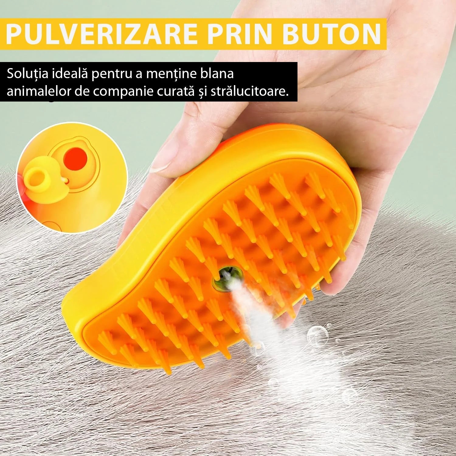 Set Pet Cleaner – Fur Wizard + Perie 3 în 1 cu Aburi pentru Animale de Companie
